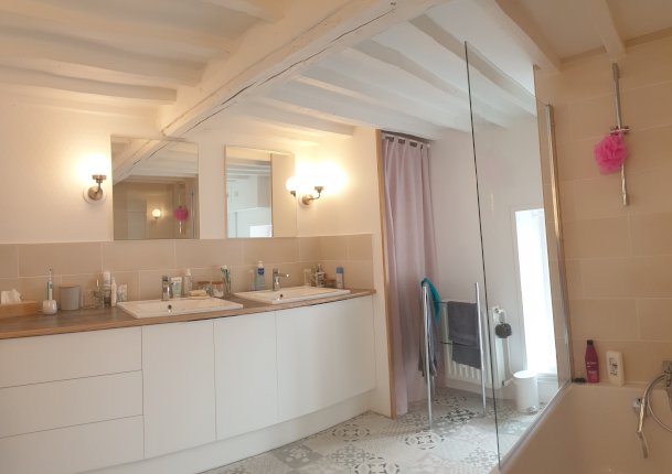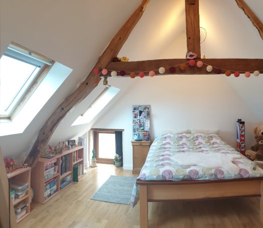 Vous trouverez au 1er étage, 3 grandes chambres (17m², 20m², 14m²), une salle de bain avec WC.