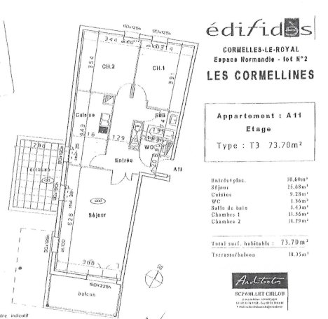 3 pièces 73,70 m² avec 1 balcon et 1 terrasse 18,35 m²