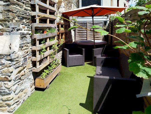 - Une jolie courette exposée Sud/Est permet de déjeuner et de se relaxer au soleil. Son aménagement actuel accueille un spa, un salon de jardin ainsi qu’un barbecue et un jardin suspendu d’herbes aromatiques.
