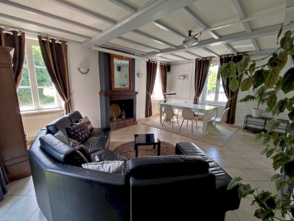 Cette très belle demeure familiale est située dans un petit bourg de campagne. Un sentier de promenade bucolique longeant la rivière est à quelques mètres.