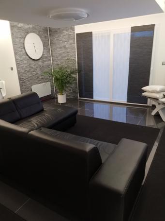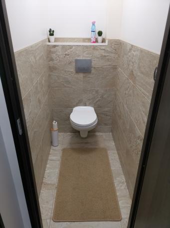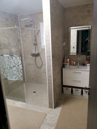 • Salle de bain avec douche italienne avec volets électriques.