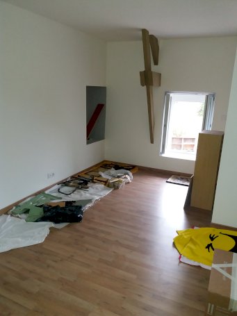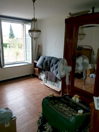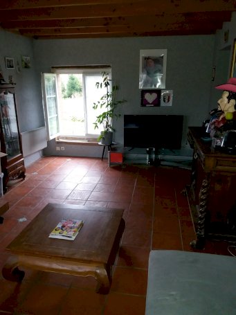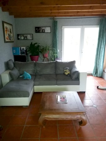 Salon de 22 m² avec possibilés d'installer un poéle a granule, porte fenétre PVC double vitrage donnant sur la terrasse a l'arriere de la maison sans vis a vis.
