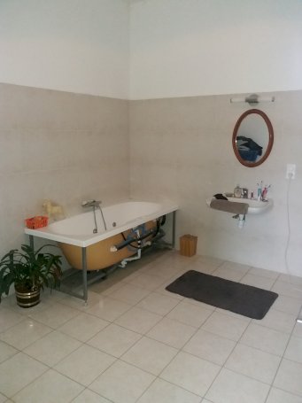 Salle de bain de 16 m² avec baignoire, WC et douche a l'italienne adapté pour personne a mobilité reduite, ballon éléctrique.