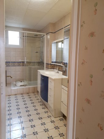 RDC entrée cuisine aménagée et équipée 18m²96 Salon 16m²97 et cheminée, volets roulants Belle salle de douches WC indépendant