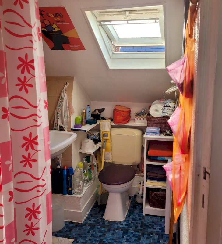 - Une salle de douche avec lavabo, douche, vrai WC. Et grand vélux.