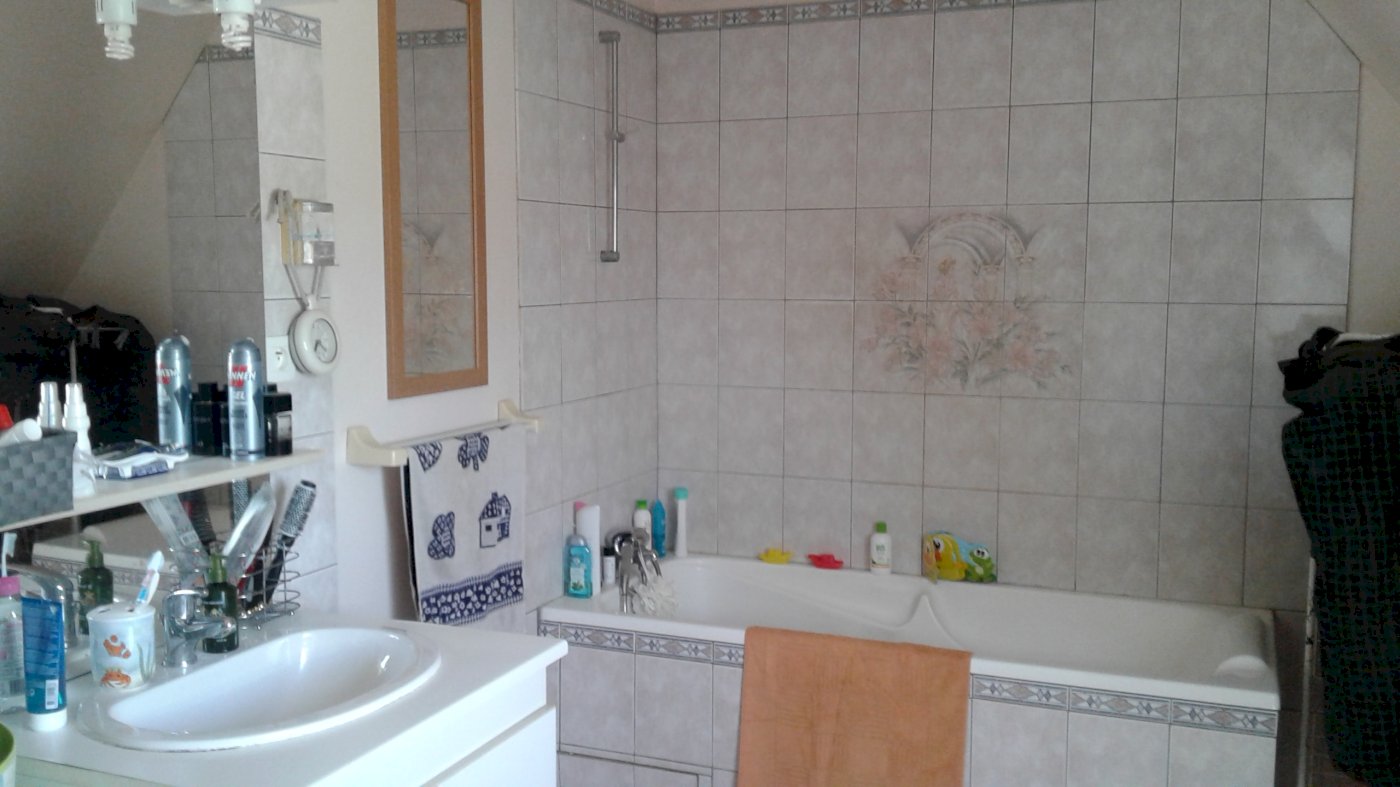 • A l'étage = 3 chambres et une salle de bains avec WC.