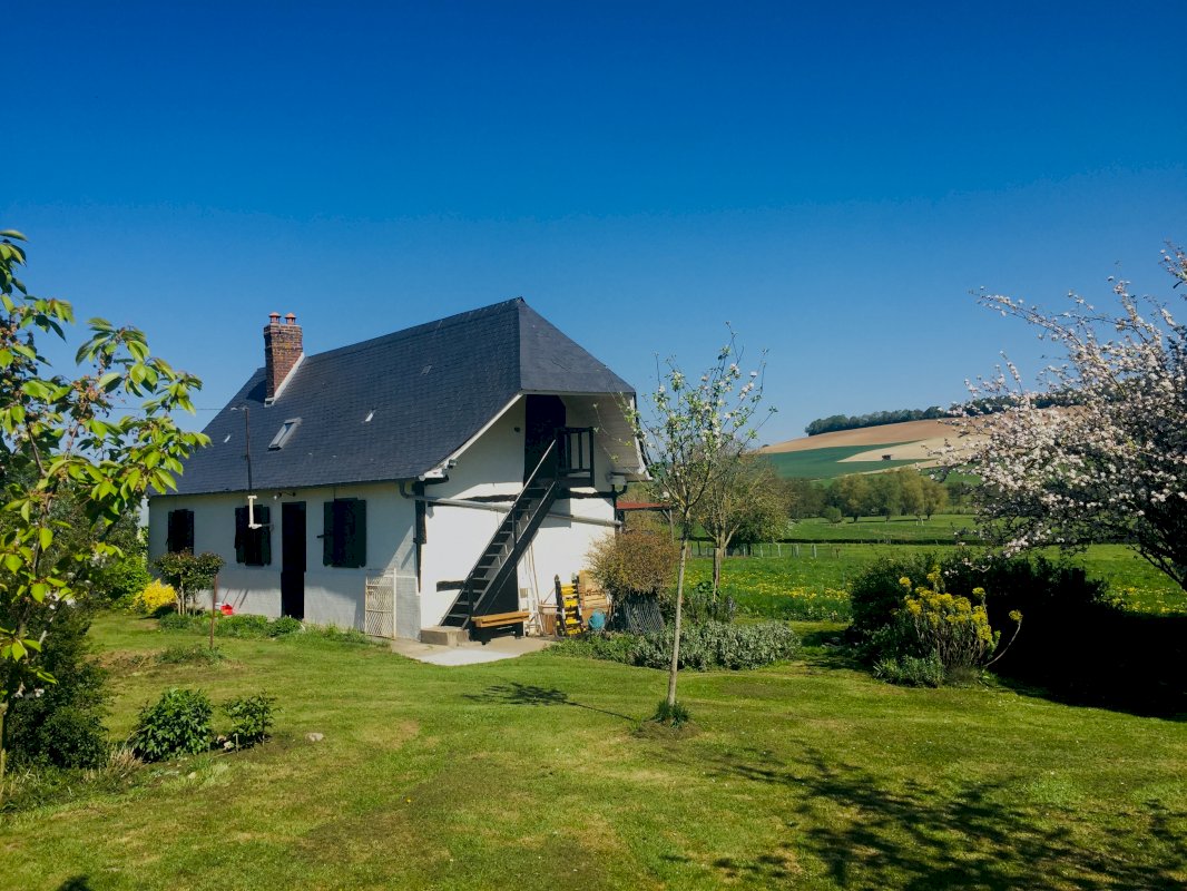 Nous vendons notre maison de campagne située à 2h15 de Paris. En campagne mais non isolée, située en retrait d’une petite route desservant un hameau, elle est à 1500 mètres de Londinieres où se trouve commerces de bouche pharmacie et supérette.