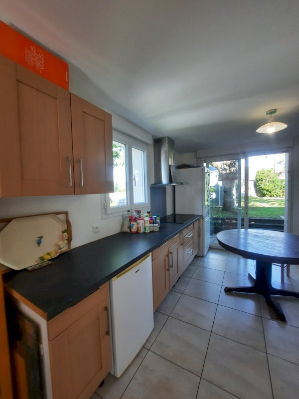 comprenant au RDC : entrée , grand séjour - salon et cuisine , arrière cuisine , bureau ou chambre , wc , garage .
