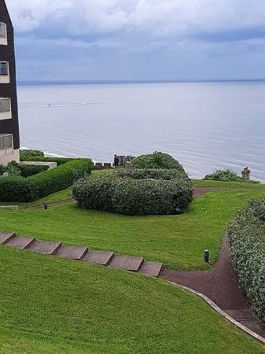 Appartement en RDC SURÉLEVÉ sur les hauteurs de Trouville, vue imprenable sur plage et mer avec accès DIRECT privé à pieds de la résidence.