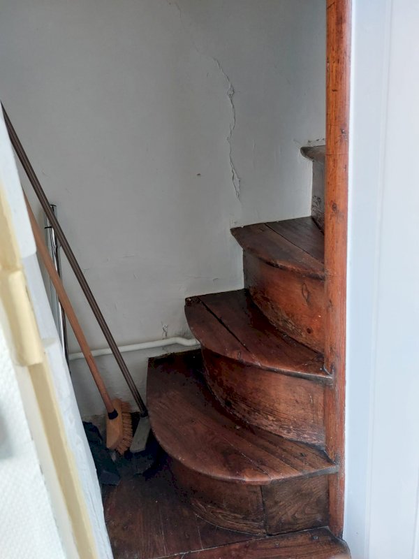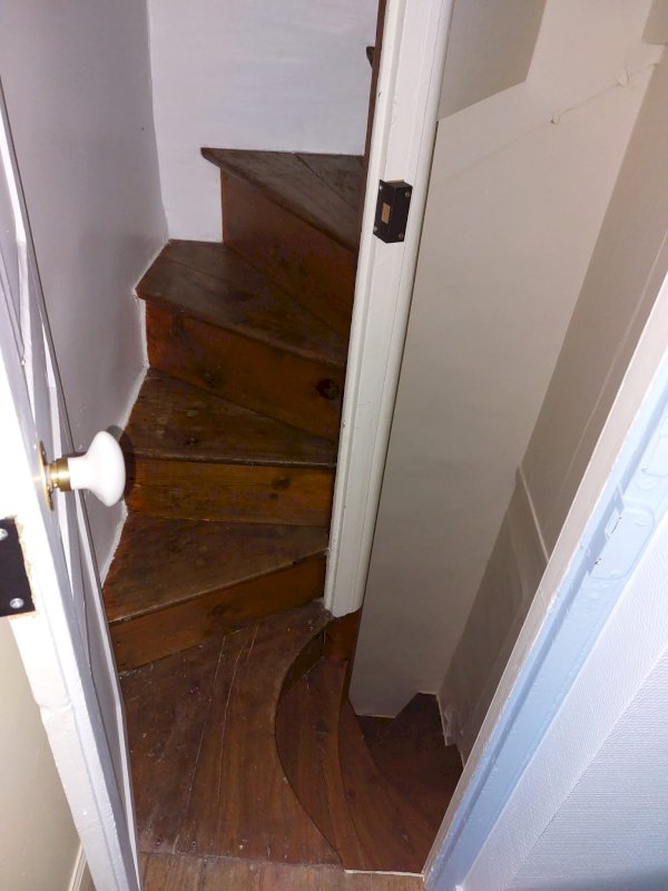 De la cuisine ou de la salle à manger vous accédez aux étages par de jolis escaliers bois (d'origine).