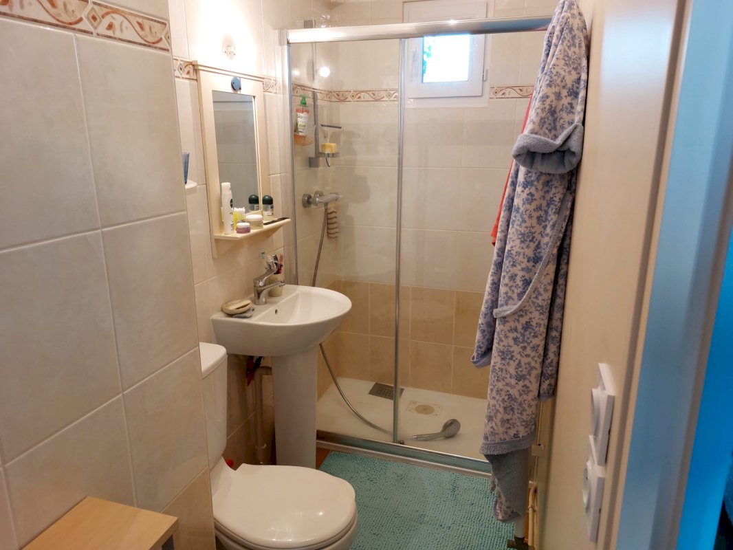 La maison se répartit sur trois niveaux. Au rez-de-chaussée, une cuisine équipée avec cave à vin. Une salle à manger et un WC.