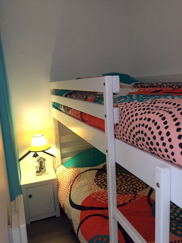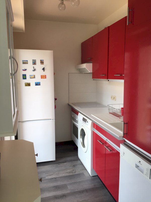 séjour avec balcon de 10m2 exposé ouest avec très belle vue mer, cuisine entièrement équipée et chambre avec vue sur mer également, salle de bains, un wc séparé, local vélo.