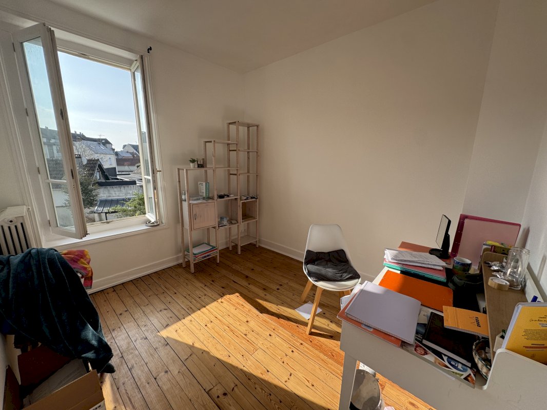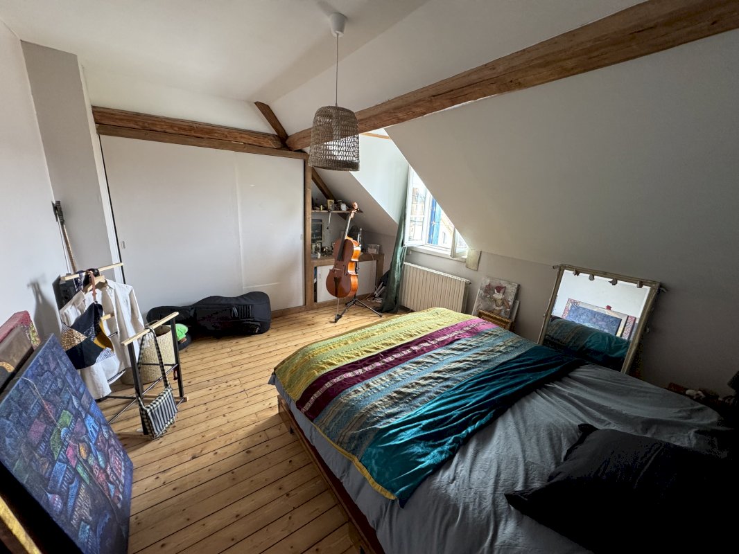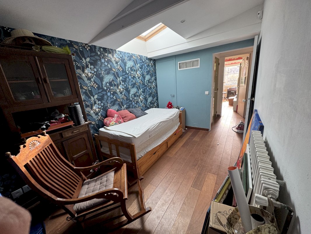 Deuxième étage : un palier, trois chambres de 14m2 et 10m2, 11m2, une salle de douche et bain avec WC.