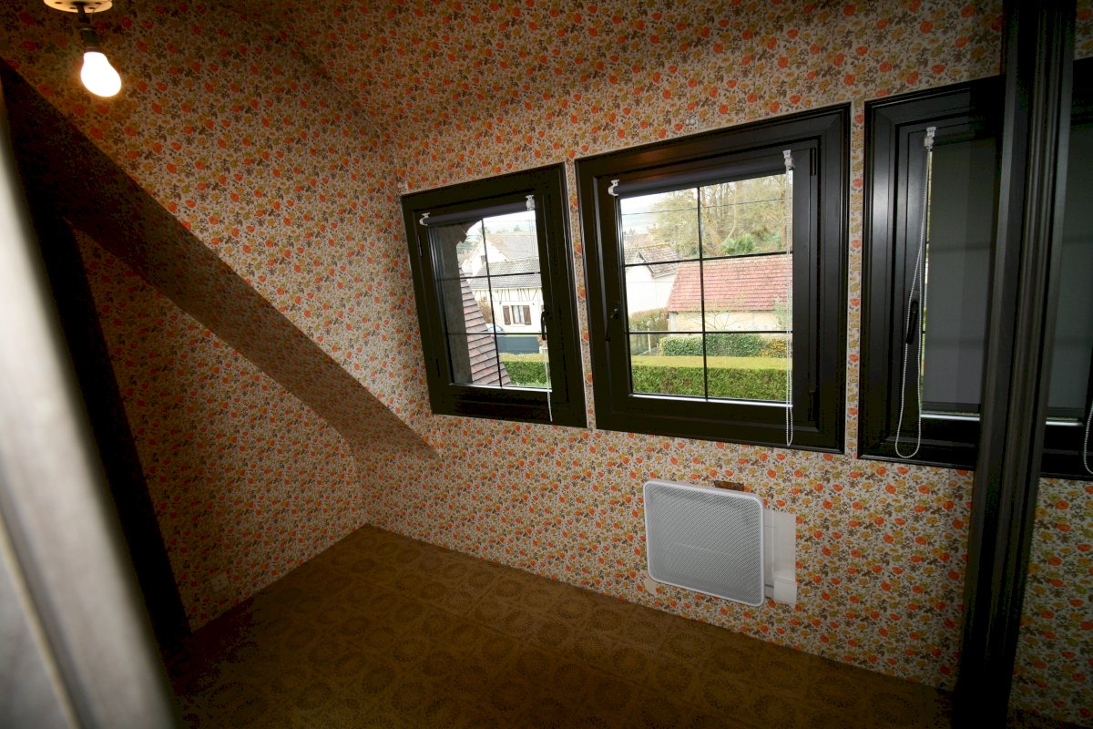 A Acquigny (Dept 27) dans la vallée de l’Eure, vend maison d’architecte de style Normand en construction traditionnelle de 140 m² (hors surface sous/sol) comprenant :
