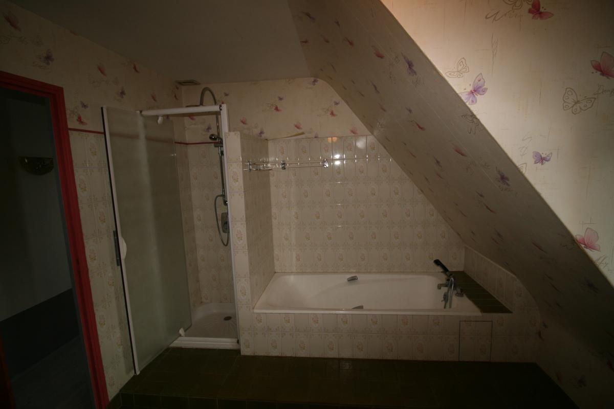 1 Salle de bain de 5.93 m² avec douche, baignoire, meuble lavabos double vasques.