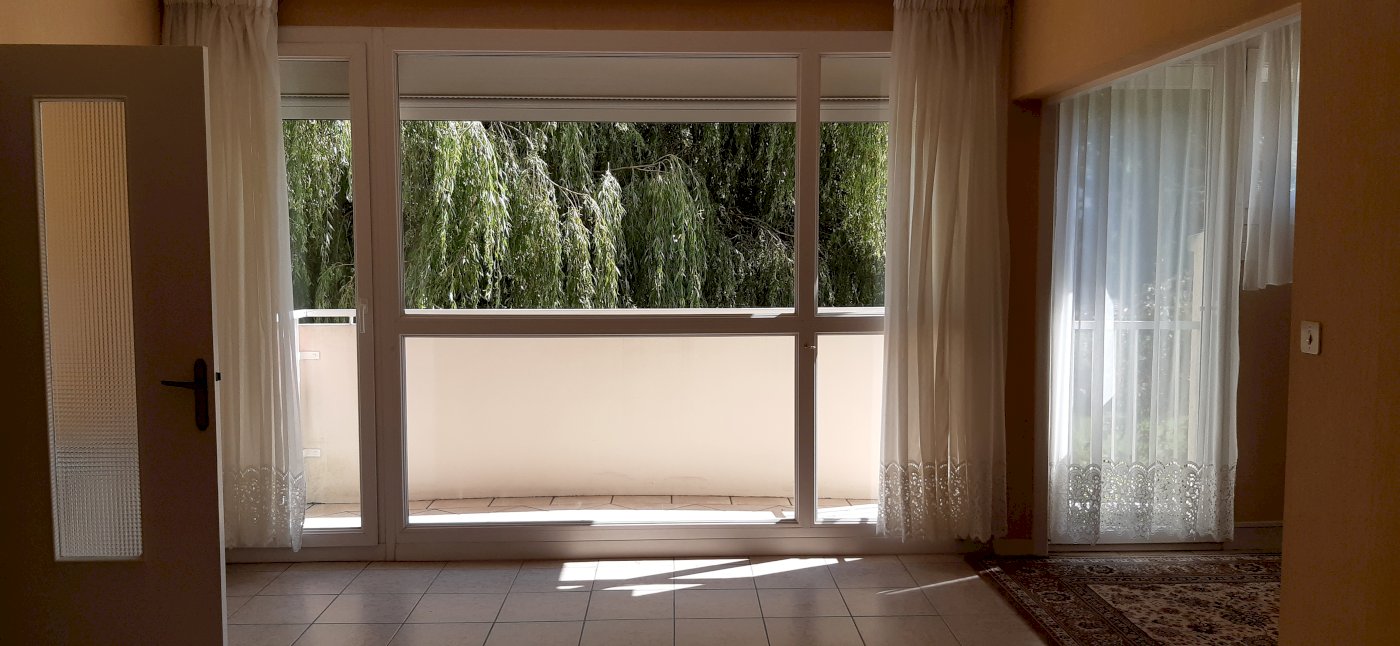 Passée la porte blindée, vous arriverez dans un couloir entièrement parqué, refait à neuf en mai 2025. Ce dernier dessert une cuisine équipée de meubles et d'une plaque vitro-céramique, et grande salle à manger/salon de 28m² donnant sur un balcon pavé plein sud. Vous n'aurez pour vis à vis qu'un grand saule.