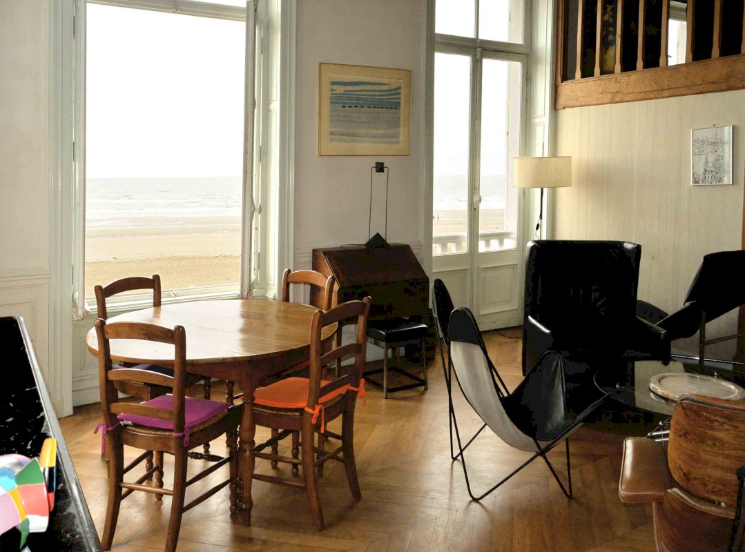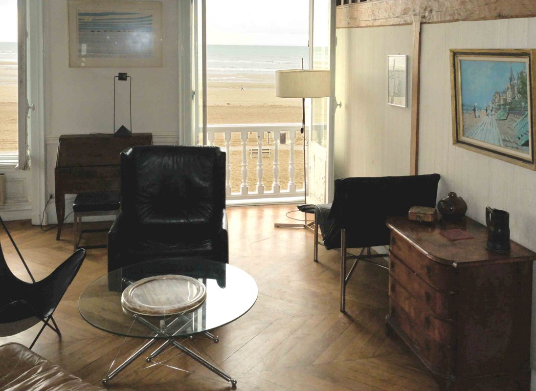 Je vends un grand appartement de charme donnant directement sur la plage de Trouville, à 5 mn des commerces, toutes fenêtres sur mer. Il est situé dans l’une des plus belles villas du front de mer, peinte par Claude Monet en 1870.