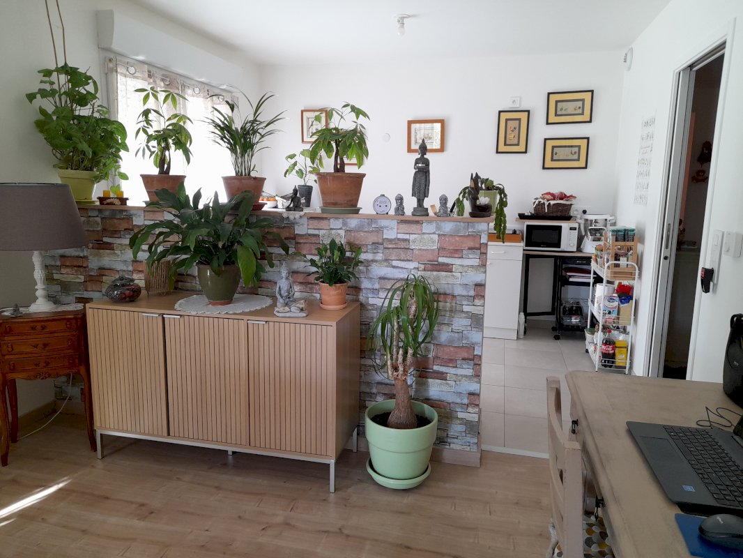 * Cuisine ouverte sur salon-salle à manger : 9,20 avec pirte à galandage donnant sur l'entrée