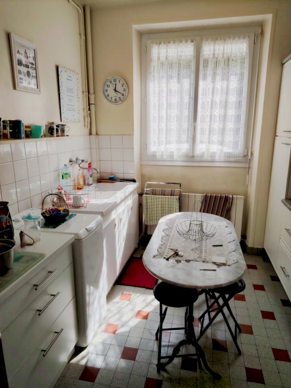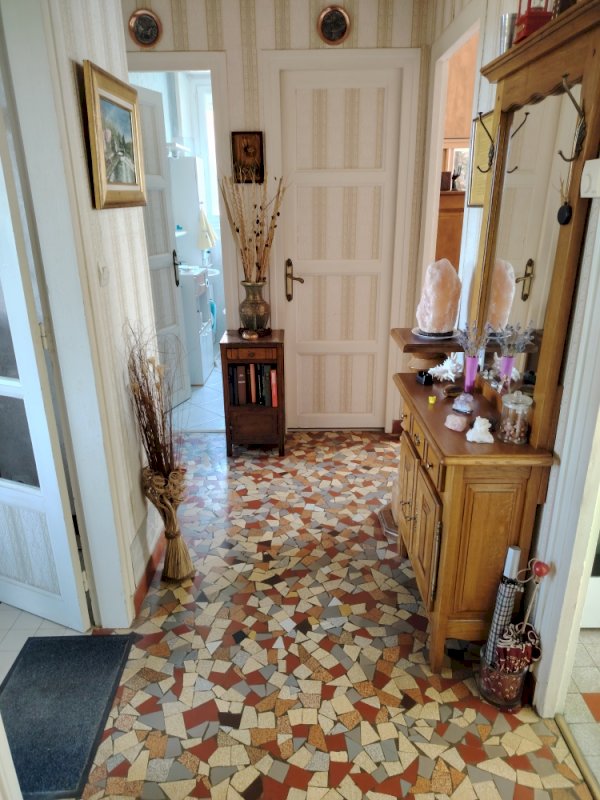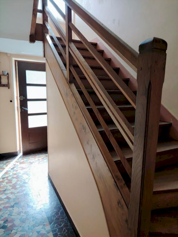 - grande entrée commune avec escalier qui dessert l'appartement en vente, l'autre appartement au 1er étage et le grenier au 2e étage,