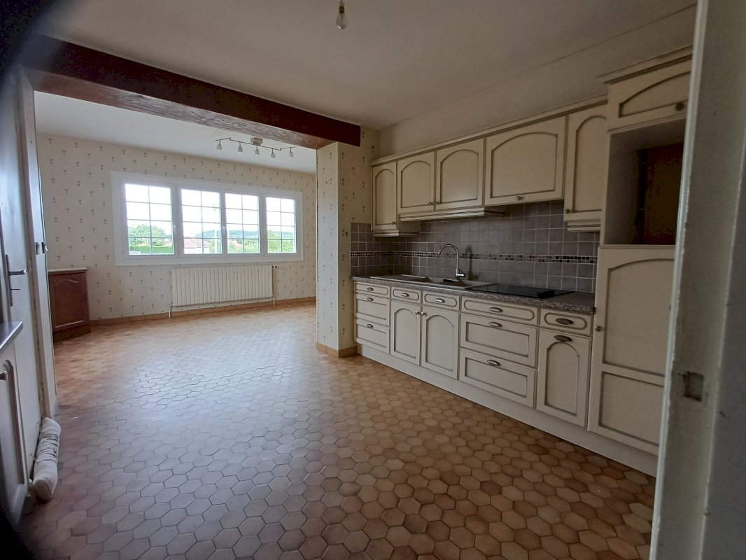 Dans un quartier pavillonnaire très calme de Vernon,proche des écoles et commerce,maison édifiée sur un sous sol totalcomprenant au rez de chaussée sas d'entrée, cuisine + salle à manger aménagées,grand séjour en L avec cheminée,donnant sur un grand balcon,bureau,salle de bains,wc.A l'étage,palier avec placard desservant 4 chambres,salle de douche,wc.Grand grenier avec belle charpente traditionnelle. Chaudière gaz à condensation.Batiment annexe de 92 m2 pouvant convenir pour artisan ou pour garage véhicules.Le tout sur terrain de 560 m2