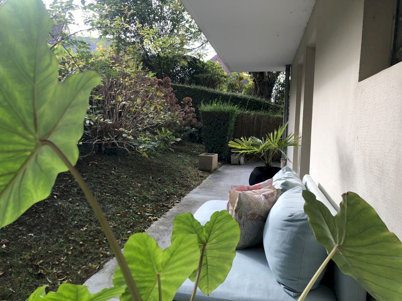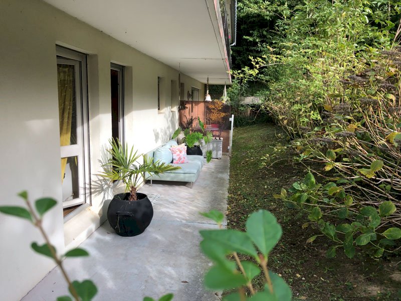 Grand appartement de 50m2 situé en rez-de-jardin, sans vis-à-vis, en pleine nature, sur une terrasse en angle d'environ 40m2.